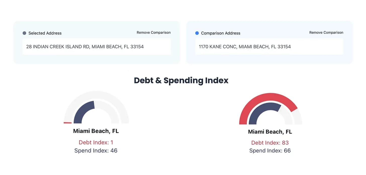 Another financial benefit that’s easy to miss is the major difference in debt burden between Seattle and Bezos’s new home in Indian Creek Village. According to StatisNostics, a database that utilizes U.S. government census data, Miami Beach as a whole has a high debt index score of 83/100, meaning a high amount of debt per resident. Seattle, WA, which housed Bezos’s previous residence, also has a debt index score of 83/100. So why relocate to a city with the same, if not more, debt? Let’s take a closer look. When you zero in on Indian Creek Village, the Miami Beach city that Bezos is moving to, the debt index score plummets to 1/100. Indian Creek Village, affectionately known as “Billionaire Bunker '' also houses other affluent individuals like Ivanka Trump, singer David Guetta, and quarterback Tom Brady. Considering that Billionaire Bunker is a lot more financially sound than other parts of Miami Beach, it’s perfectly logical for high-income people to move there and retain their wealth.